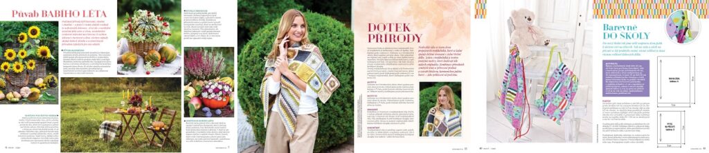 Chcete-li oživit obývací pokoj, jídelnu či venkovní prostor, vaše vlastní dekorace to snadno zvládnou. Milovníky šití a patchworku potěší nápad na krásnou deku s růžičkovým motivem, která zahřeje nejen tělem, ale i na duši. A protože každá žena se ráda zdobí, připravili jsme i výběr háčkovaných a pletených modelů – moderních, praktických a přitom stylových. Celá módní série byla nafocena v kouzelných venkovních prostorách kolem zámku na Zbraslavi, které ještě více podtrhly podzimní atmosféru a eleganci modelů. Šátky a šály ocení všechny, které se chtějí zahalit do podzimního pohodlí, aniž by ztratily šmrnc.